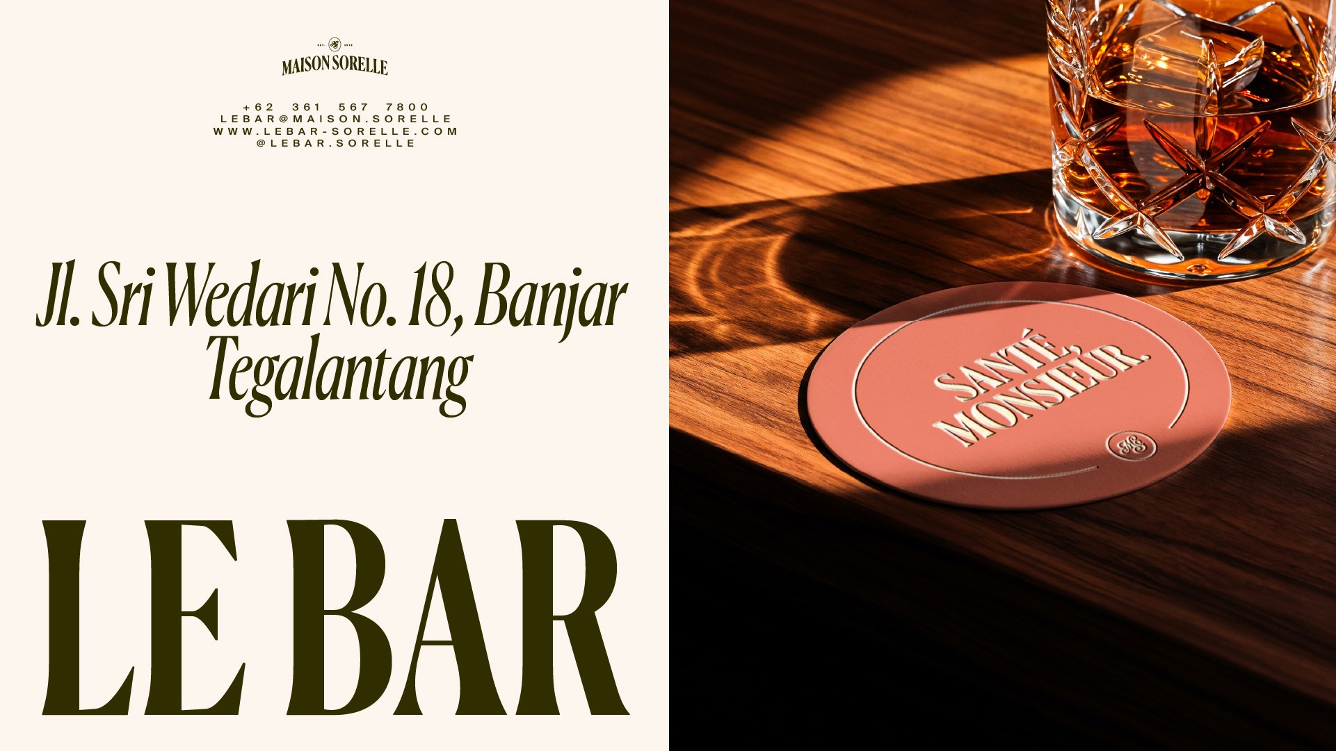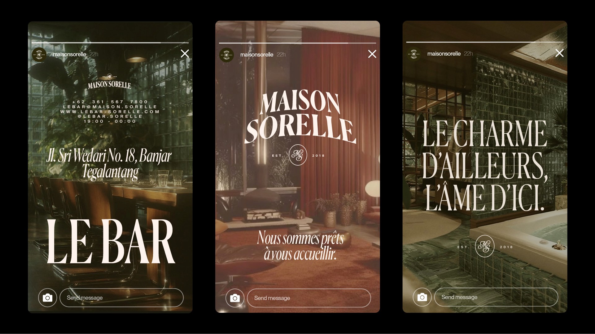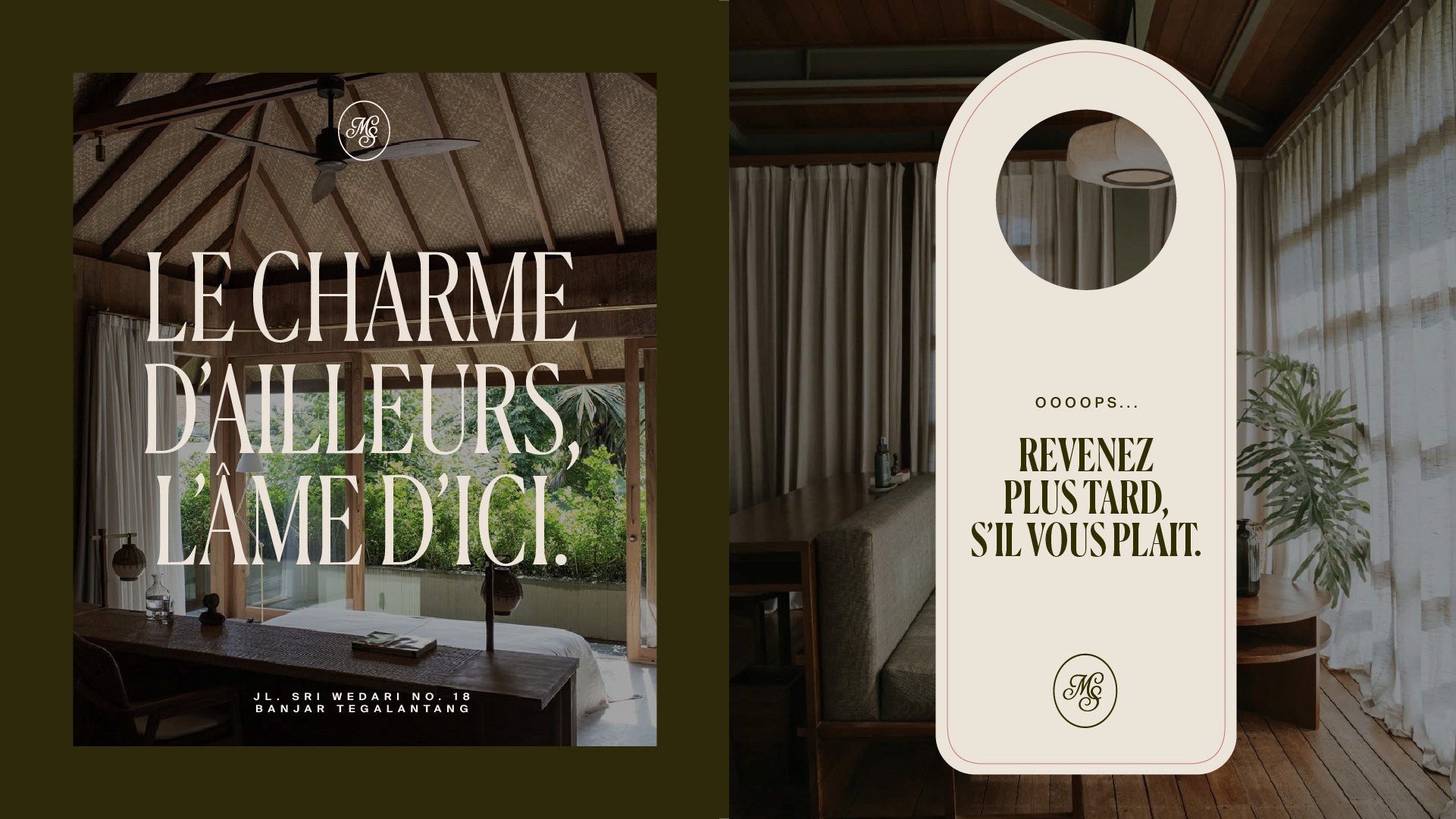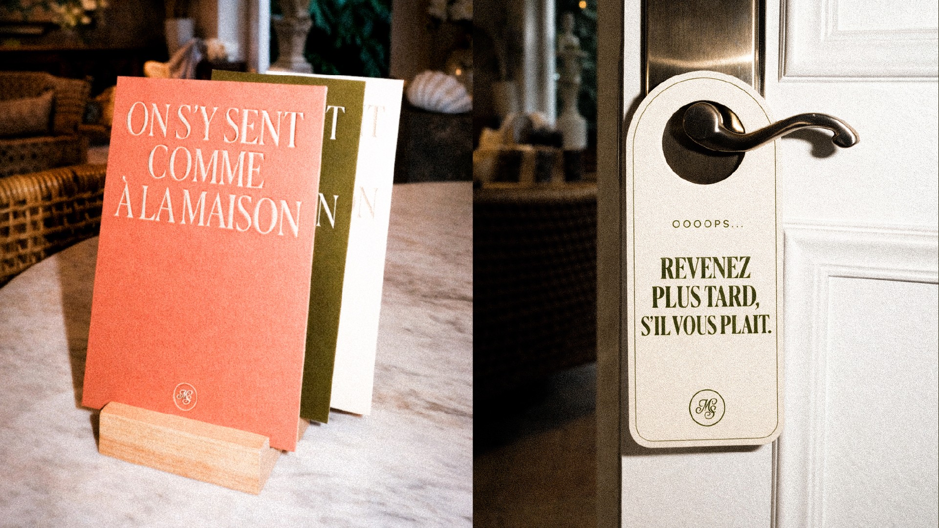 Maison Sorelle déploie une identité visuelle empreinte de douceur et d’élégance, où la nature luxuriante dialogue avec une typographie raffinée et intemporelle. Les teintes profondes, les matières organiques et la lumière tamisée composent un univers chaleureux et intimiste, évoquant à la fois l’évasion et l’ancrage. Entre charme d’ailleurs et âme d’ici, l’esthétique de Maison Sorelle traduit l’idée d’un refuge poétique : une maison habitée par le lien, la sérénité et l’art de recevoir.
